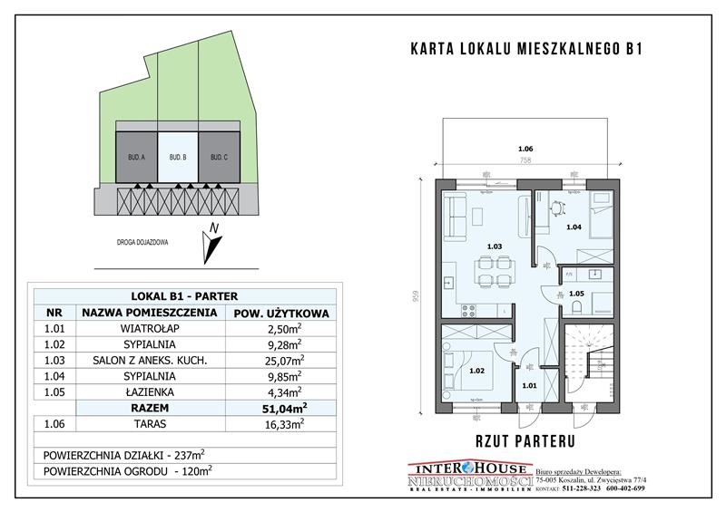 Powyższa oferta nieruchomości stanowi charakter informacyjny oraz zaproszenie do rokowań zgodnie z Art. 71 KC i nie stanowi oferty określonej w art 66 i następnych KC. Kontaktując się z biurem poprzez formularz kontaktowy, e-mailowo bądź telefonicznie Klient wyraża zgodę na przetwarzanie danych osobowych zgodnie z przepisami ustawy z dnia 29 sierpnia 1997 roku o ochronie danych osobowych /Dz.U. Nr 133 poz. 883. Klientowi przysługuje prawo do wglądu do swoich danych osobowych, ich aktualizacji lub usunięcia. Administratorem danych osobowych jest Interhouse Nieruchomości Marzenna Zientarska, z siedzibą w Koszalinie przy ul. Zwycięstwa 77/4. Podawanie danych osobowych jest dobrowolne, a przetwarzanie ich jest ściśle związane z działalnością pośrednictwa w obrocie nieruchomościami. Podanie danych osobowych jest warunkiem zawarcia umowy pośrednictwa i świadczenia usługi.