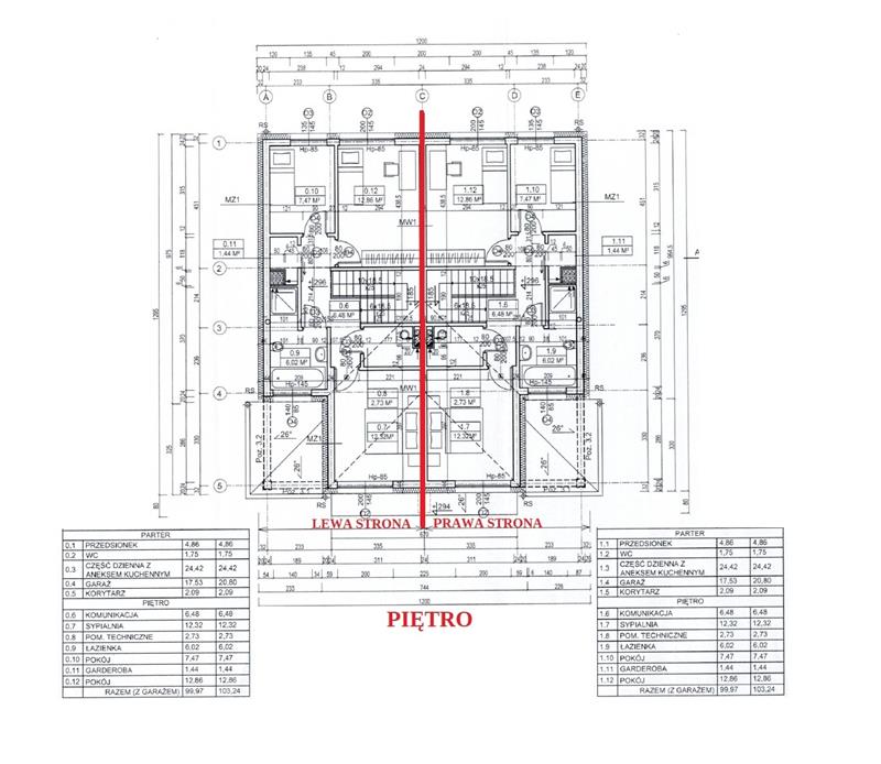 garaż z wejściem z domu – 17,53 m2 (1.4) + schowek 3,27 m2 (po podłodze)