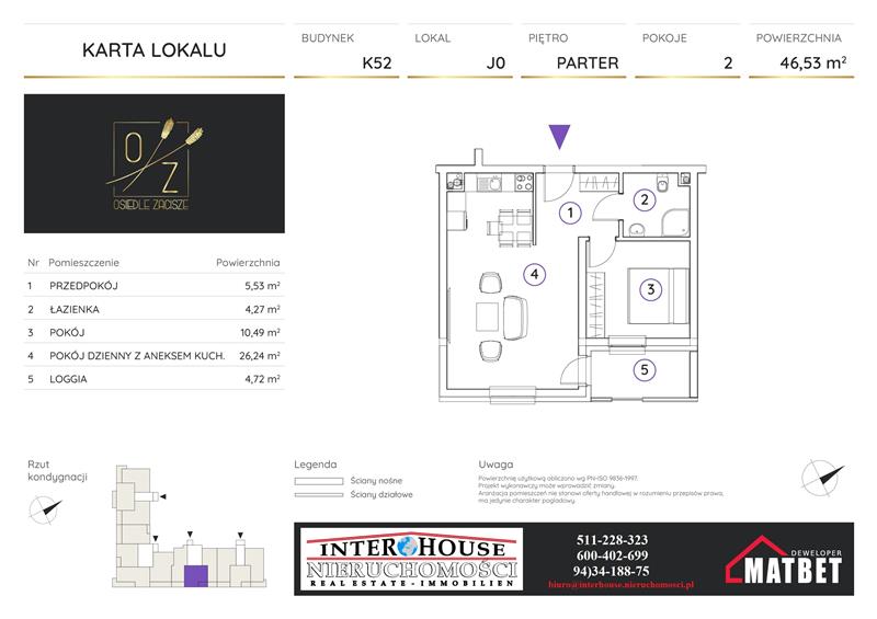 Powyższa oferta nieruchomości stanowi charakter informacyjny oraz zaproszenie do rokowań zgodnie z Art. 71 KC i nie stanowi oferty określonej w art 66 i następnych KC. Kontaktując się z biurem poprzez formularz kontaktowy, e-mailowo bądź telefonicznie Klient wyraża zgodę na przetwarzanie danych osobowych zgodnie z przepisami ustawy z dnia 29 sierpnia 1997 roku o ochronie danych osobowych /Dz.U. Nr 133 poz. 883. Klientowi przysługuje prawo do wglądu do swoich danych osobowych, ich aktualizacji lub usunięcia. Administratorem danych osobowych jest Interhouse Nieruchomości Marzenna Zientarska, z siedzibą w Koszalinie przy ul. Zwycięstwa 77/4. Podawanie danych osobowych jest dobrowolne, a przetwarzanie ich jest ściśle związane z działalnością pośrednictwa w obrocie nieruchomościami. Podanie danych osobowych jest warunkiem zawarcia umowy pośrednictwa i świadczenia usługi.
