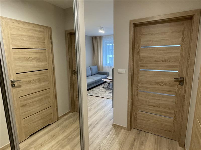 Mieszkanie bardzo ciepłe i przytulne, utrzymane w jasnych kolorach beżu, bieli i szarości. Nowe wyposażenie